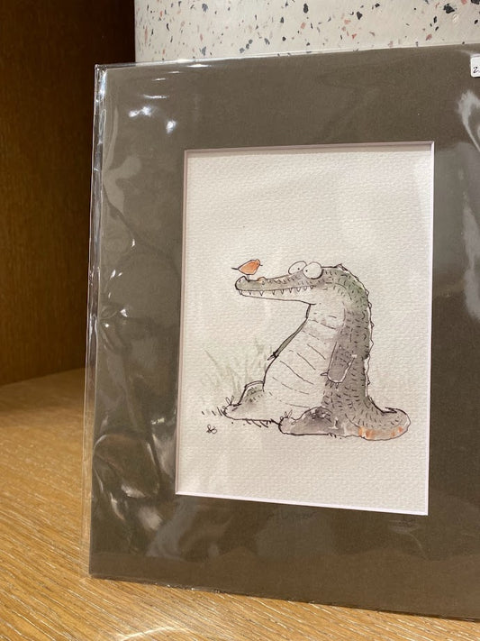 Crocodile & Red Bird - Watercolor - Signed Prints