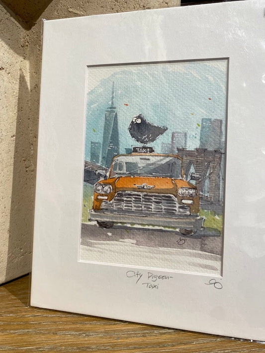 City Pigeon - Taxi - Watercolor - Signed Prints