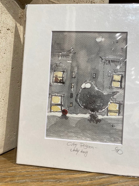 City Pigeon - Ladybug - Watercolor - Signed Prints