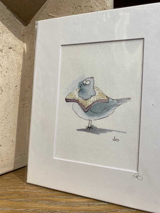 City Pigeon - Sandwich - Watercolor - Signed Prints
