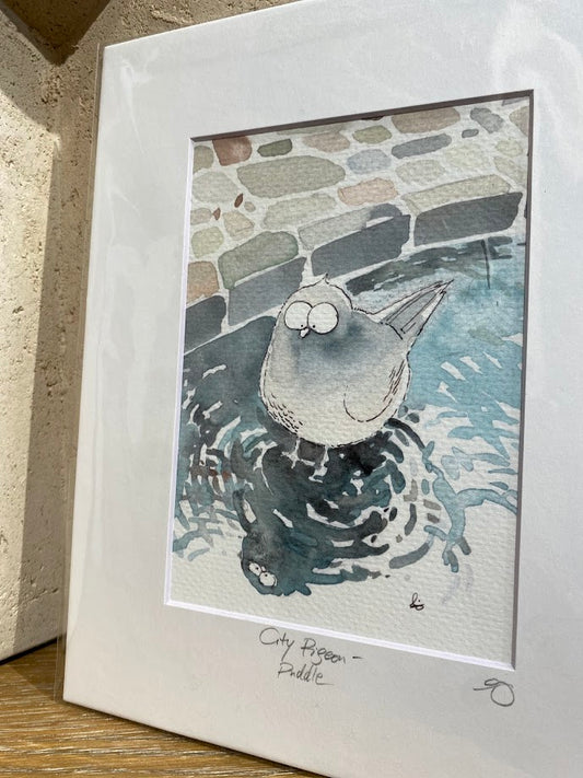City Pigeon - Puddle - Watercolor - Signed Prints