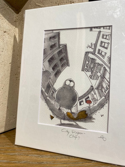 City Pigeon - Got Chips? - Watercolor - Signed Prints