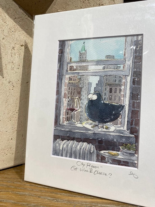 City Pigeon - Got Wine & Cheese? - Watercolor - Signed Prints