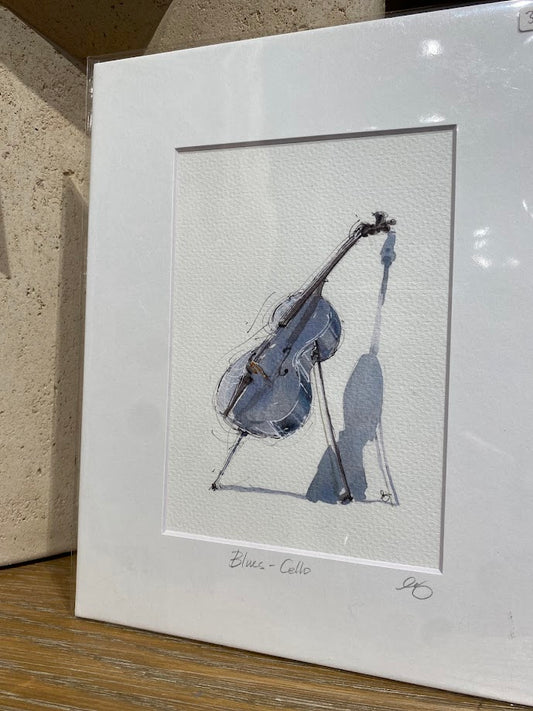 Blues Cello - Music, Jazz - Watercolor - Signed Prints