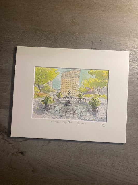 Madison Square Park Fountain - Watercolor - Signed Prints